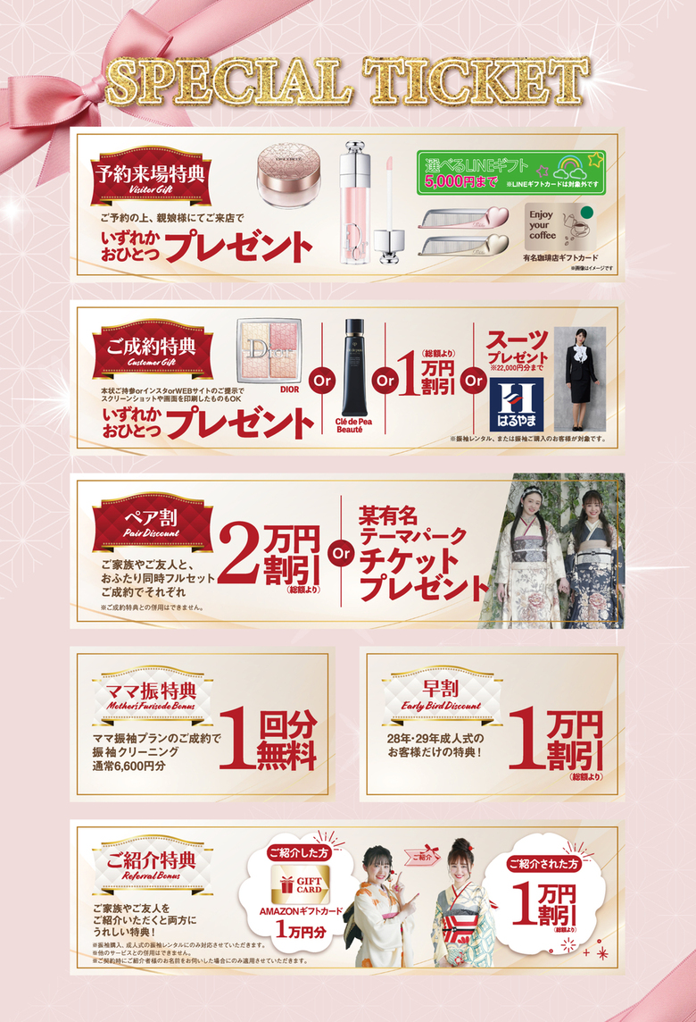 など、新作振袖展ならではの豪華特典をお見逃しなく!